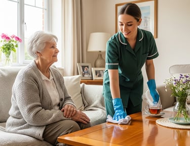 Neben der pflegerischen Betreuung übernehmen wir auch hauswirtschaftliche Aufgaben wie Reinigung, Einkaufen oder Kochen. Unser Ziel ist es, Sie im Alltag zu entlasten und ein angenehmes Wohnumfeld zu schaffen.